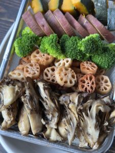 根菜メインに、塩麹や、甘酒、いしるの発酵食品を加え作りました。